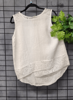 BEYOND CAPRI LINEN TANK WITH LACE BACK