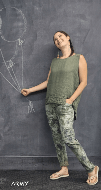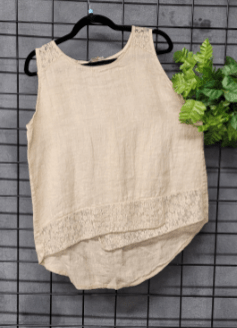 BEYOND CAPRI LINEN TANK WITH LACE BACK, ONE SIZE, MADE IN ITALY, FITS SIZE 8-14 COMFORTABLY